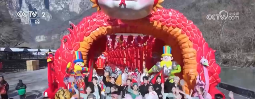 在河南焦作市云台山景区,火红的灯笼高高挂起,喜庆的音乐吵杂超卓,穿过尽是祝颂的灯笼长廊,舞台上河南豫剧联唱让旅客感受到传统文化的魔力。除此除外,还有兽装跳舞、萌宠巡游、非遗展演、互动魔术等丰富多彩的体验举止。在景区的泉瀑峡景点内,山泉水从山石舛错流出,在零下十几摄氏度的温度下酿成倒挂的冰瀑景不雅,成为冬季最靓丽的快意。这座由冰瀑构建起的“洞天福地”蛊惑着广大旅客和影相师前来打卡。