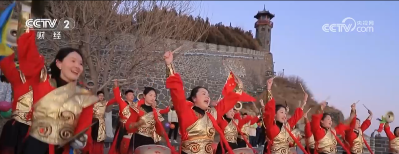 在山东烟台市蓬莱阁景区,锣饱读队队员们身着节日盛装,踏着节拍,敲起锣饱读;秧歌队员们也跟着喜庆的音乐,摆动记号的彩绸,扭起欢笑的秧歌,愉悦写满面颊。